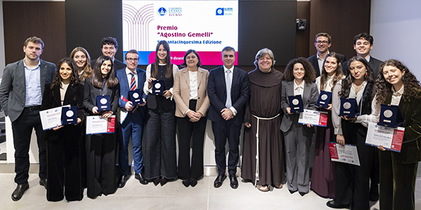 • ASSOCIATIONS | MILAN | DECEMBER 9, 2024 64th Prize "Agostino Gemelli" The best graduates of each Faculty received the "Agostino Gemelli" Prize promoted by the Ludovico Necchi Association. During the ceremony, in the presence of the Rector, the Deans, the Speakers and the families of the winners, the Prize of the publishing house Vita e Pensiero and the Realmonte Association were also awarded. Find out more